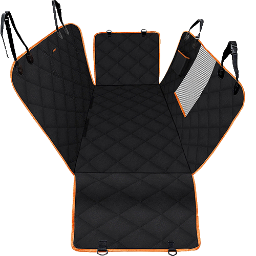 BarksBar is a no-frills back seat cover that’s a slight step above the last products on our list. Made of polyester with a non-slip rubber webbing, it’s simple to install by clicking the plastic buckles around the front and back headrests. The BarksBar cover has two flimsy side flaps that tuck down on either side of the back seat, but it has no flap to protect car doors.