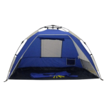 If you’re looking for a tent that can fit the average family (two adults and two to three children), the Lightspeed Outdoors – Quick Cabana is the one for you! Its extended floormat provides four extra feet of (unsheltered) sand coverage for kids and adults to spread out, making this a great choice for larger families as it can fit around three to four people, and its three windows provide decent ventilation. If you have small children, this likely could squeeze two adults and two to three small children.