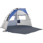If you’re trying to decide between a beach umbrella and a beach tent, this is a good hybrid option that provides a bit more ventilation than the latter.