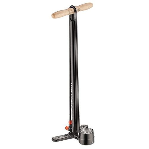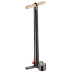 Our runner-up floor pump is the Lezyne – Steel Floor Drive. Its extra-long 48-inch hose and unique screw-on valve mechanism make connecting the pump to the tube incredibly easy and secure. The pump’s black polished finish and wooden handle look sharp and feel great.