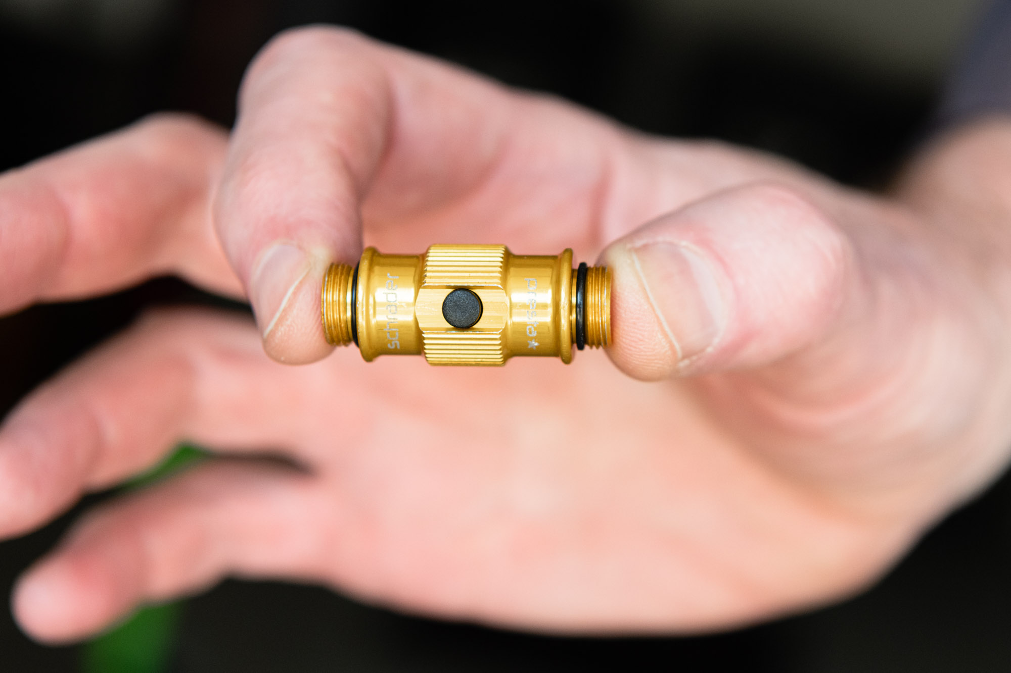 The connection valve is not our favorite in the mini pump category, but it is easy enough to get accustomed to after a couple uses. By unscrewing a large plastic washer at the opening, you release a plastic part with a stem designed for the Schrader valve and a rubber ring designed to fit over the Presta valve.