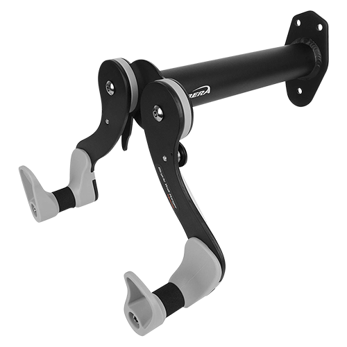 This is the most common type of bike rack for either a vertical or horizontal mount. They can be as simple as a metal hook or a carefully designed adjustable bracket. In a vertical mount, the bike hangs off a rubber-coated hook by the front tire; in a horizontal mount, the bike hangs off two fixed arms by its frame.