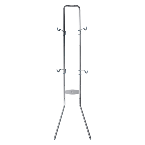 Assembled, the Michelangelo stands 7 feet tall and its splayed legs are only 20 inches wide, which makes this bike rack ideal for apartment dwellers. Because the top hooks need to be positioned high to allow room for the lower bike, a shorter person might have trouble lifting their bike up onto the upper rungs. The Michelangelo is reasonably priced for such a well-designed bike rack. For larger spaces, a four-bike model is available; two bikes hang on either side of the extra-sturdy rack.