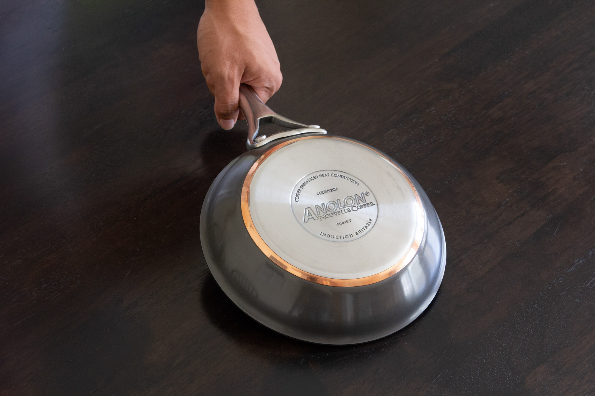 - The well-priced Anolon – Nouvelle Copper is made of a copper layer sandwiched between durable anodized aluminum with a stainless-steel base, so it can be used on any cooktop, including induction.