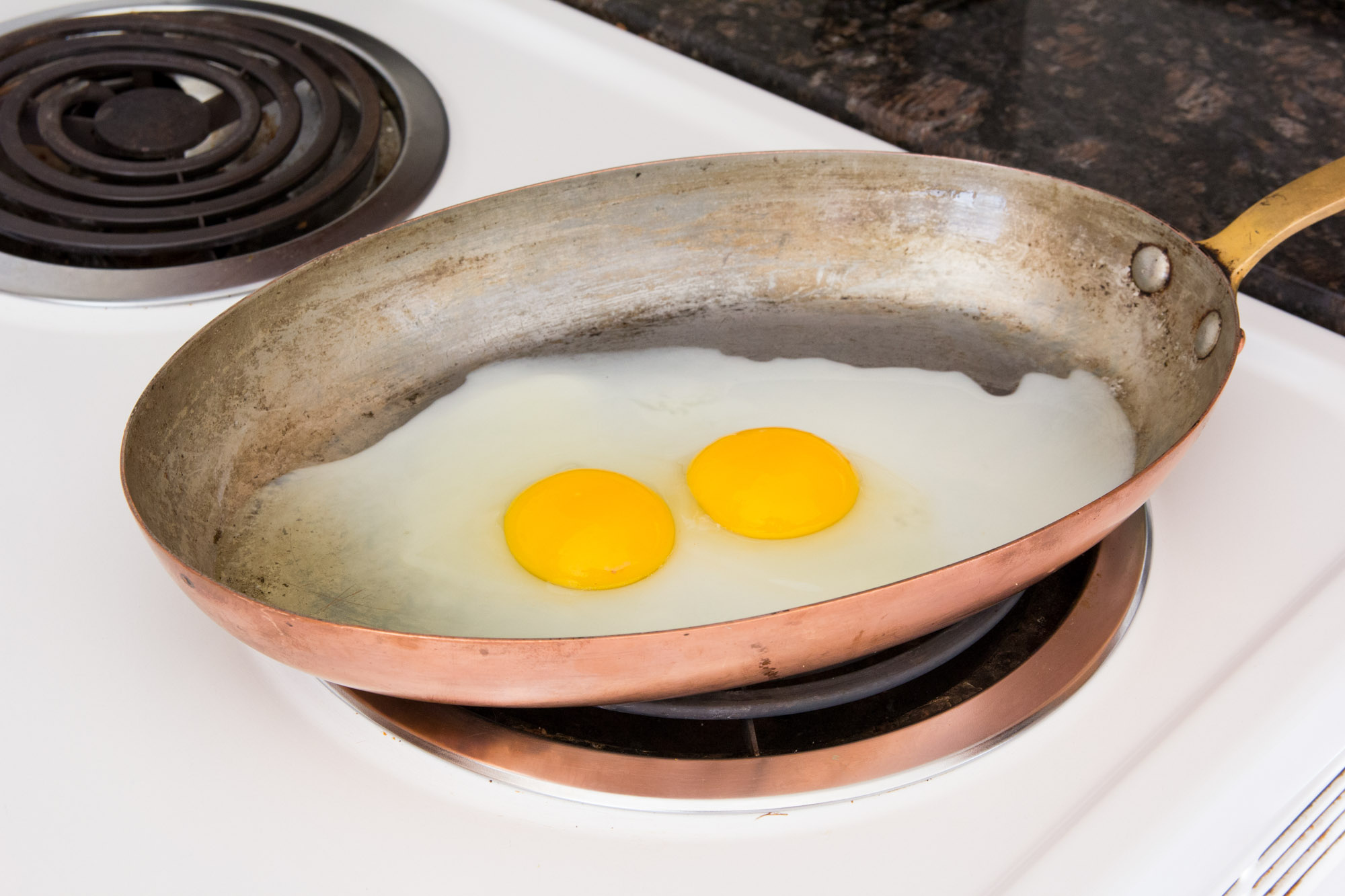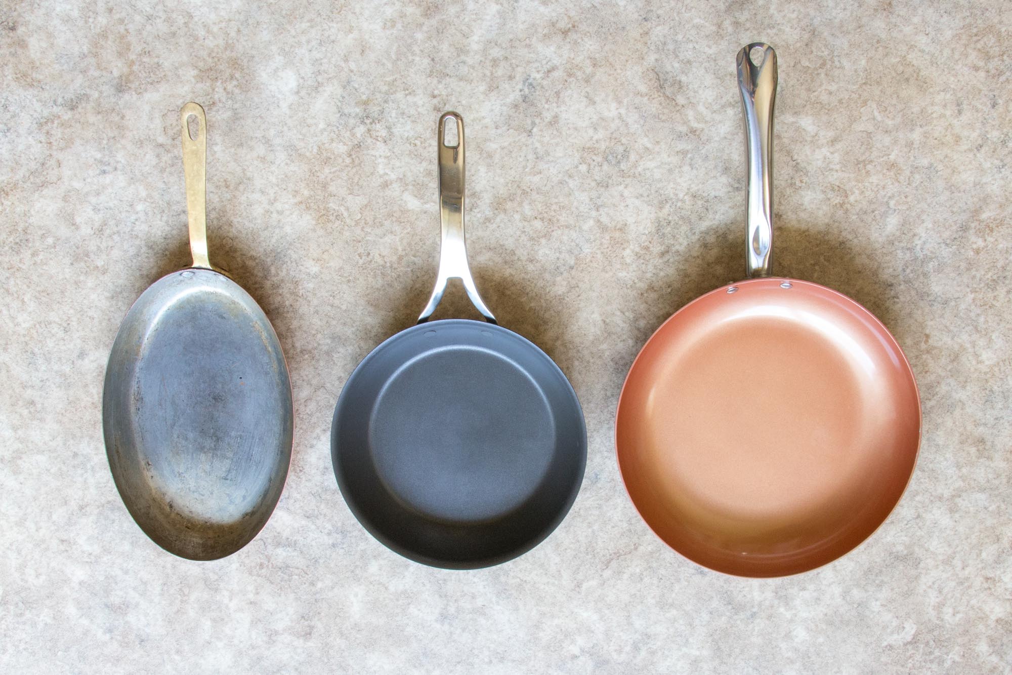 Copper is justifiably famous for its heat conductivity and distribution, and in our testing, the 100% copper pan cooked everything beautifully and quickly, even at medium-low heat. Cooking with copper, though, does take some getting used to, and copper cookware requires periodic maintenance to keep it shiny and the metal lining nonstick. It’s also extremely expensive, but it’s easy to find affordable vintage copper pieces, like we did, online.