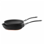The Anolon – Nouvelle Copper cookware is for people who don’t want to invest in the real thing nor deal with copper’s fussy upkeep. The cookware has only a super-thin layer (0.6 millimeters) of copper sandwiched between anodized aluminum layers, but the skillets we tested did perform very similarly to our authentic copper pan.