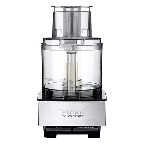We tested five of the highest-rated food processors by chopping 20 pounds of onions, carrots and celery, slicing 10 pounds of potatoes and tomatoes, and grinding 10 pounds of nuts and cheese. The Cuisinart – DFP-14BCNY excelled in all of our tests — from making mirepoix to almond butter to pizza dough — and is our choice for the best food processor. If you’re looking to upgrade to a top-of-the-line model, the Breville – BFP800XL Sous Chef is our premium pick.