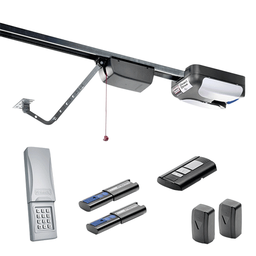 - The installer’s opener, if you buy it, typically has a long one-piece track that is said to be more reliable and durable than the bolt-together track that comes in retail packaging.