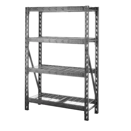 Gladiator’s system connects with angled slots rather than the keyhole-shaped connectors on most boltless shelving, but the differences don’t stop there. Gladiator uses a welded one-piece upright for each side, rather than the common trick of shipping separate pieces that are held together by shelves or couplers on other boltless designs. There’s also a center support brace that keeps the wire shelf racks from sagging.Read more…