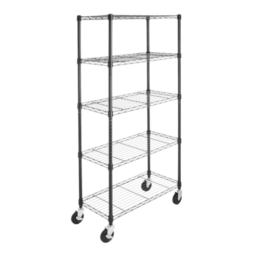 The Trinity EcoStorage Wire Shelving Rack comes with 6-tiers of strong steel and optional wheels that allow for mobility when you want to rearrange and reorganize in your garage, in your kitchen, or even in your patio. After testing this product for two months, I prefer this mobile shelving rack due to its durability (Trinity states the steel material is corrosion resistant) and mobility.