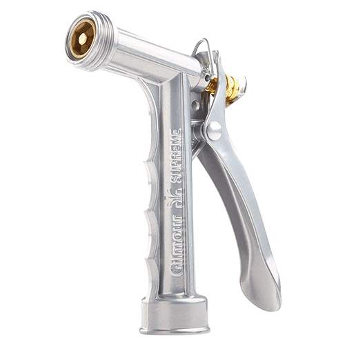 - The Gilmour – Zinc Pistol Grip is an inexpensive and well-established design that functions well as a basic garden hose nozzle.