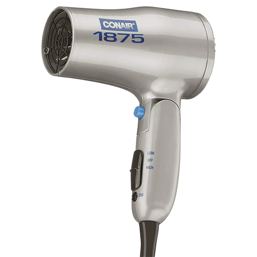 Since the Conair – 1875 is dual voltage, you won’t need a converter to use it overseas. All you’ll need is an adaptor to change the shape of the plug. It has a patented “twist it” folding handle, so it folds down to approximately 4.5×5” and fits conveniently in a carry-on bag. Priced under $20 at the time of publication, it won’t break the bank if you accidentally leave it behind in a hotel.