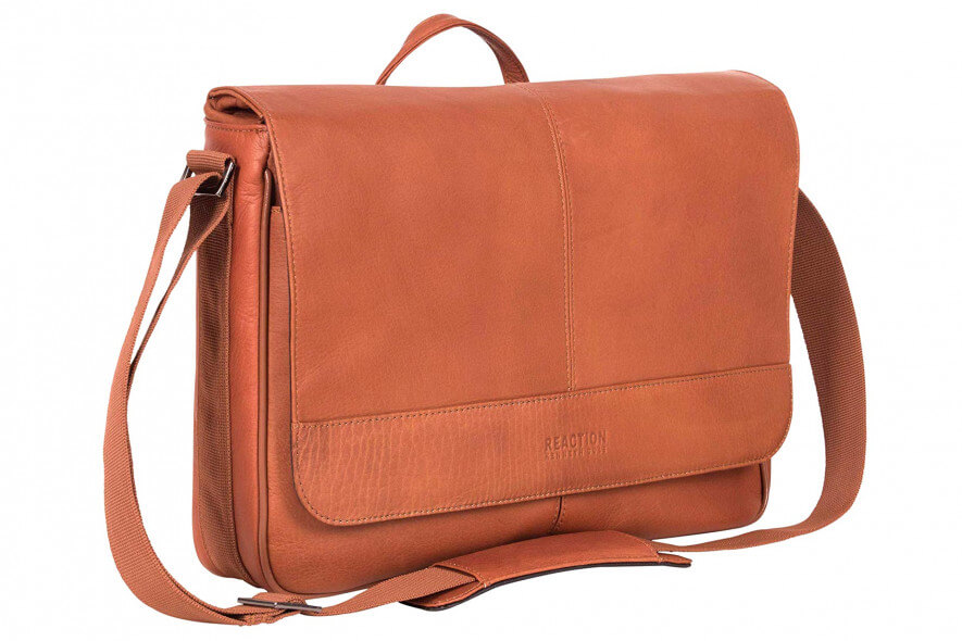 Despite its odd name, the Kenneth Cole Reaction – Come Bag Soon is a beautiful leather messenger bag that could be used as a lightweight briefcase. Be aware though that rain and daily use will stain and scratch the bag unless you pre-treat it with a leather protectant. The bag has three generously sized pockets: The rear pocket is the length and depth of the bag, and the two front pockets are 6.5-inches wide and 7-inches deep. Each easily secures with magnetic snaps, but they tend to pop open when the bag is full.