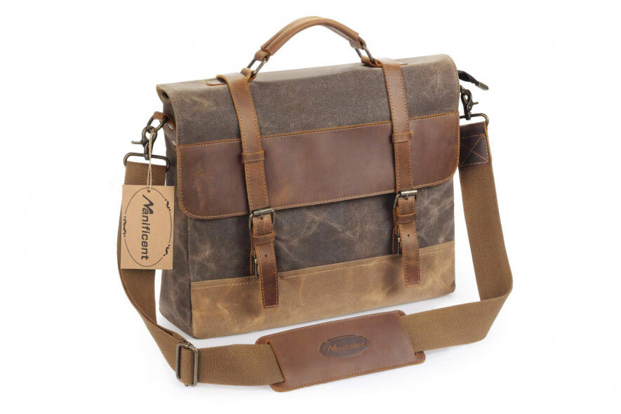 The Manificent – Men’s Messenger Bag has an expansive capacity, won’t give you shoulder pain to tote around all day and is handsome to look at too. It’s made of waxed water-resistant canvas that’s more flexible than leather when you load up the interior. Another feature to help waterproof the bag is its zippered interior, also made of waxed canvas.The Manificent’s dedicated laptop pocket is well-padded on both sides, and an elastic and Velcro band prevents your laptop from moving.