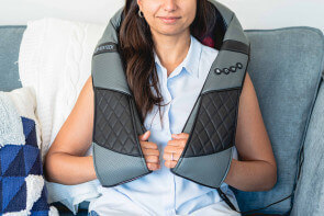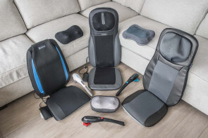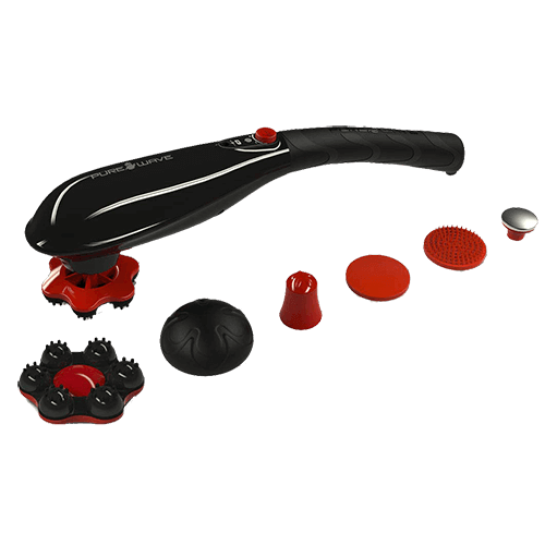 The Pado – PureWave – CM7 has a unique dual-function motor that can be switched from a powerful percussive massage to a gentle vibration for facial massages. Its sleek, lightweight design allows you to dangle the PureWave over your shoulder and reach your lower back muscles. It has six attachments, including a small chrome disk for facial massages and a soft mushroom-shaped disc for massaging bony areas. The facial massage is especially soothing, particularly if you apply a moisturizer to your forehead and around your eyes before using it.