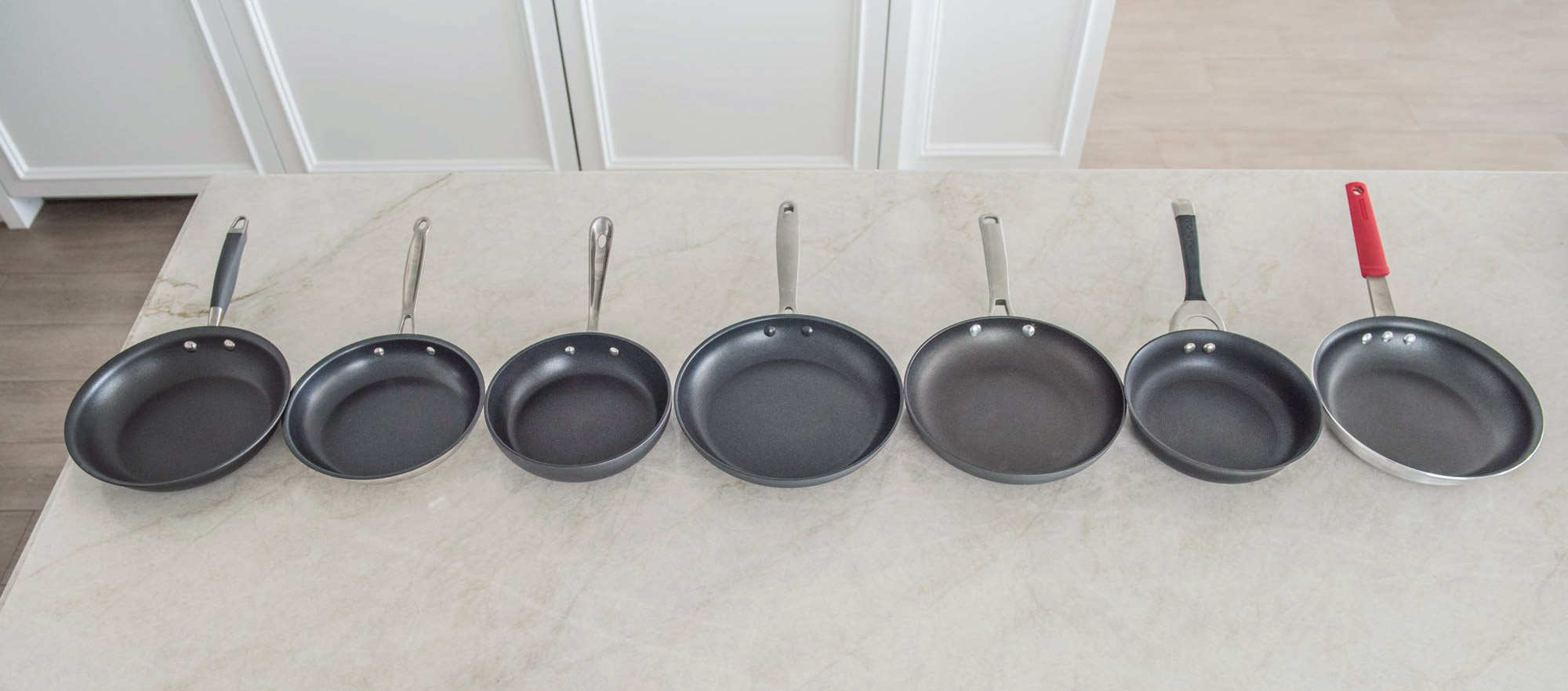 Because there are a variety of heating elements in today’s kitchens, we narrowed our selection to nonstick pans that are designed for use on gas, electric and induction cooktops. Not all of the nonstick pans we wanted to test are sold individually, so we also decided to test nonstick-pan sets that included a 10-inch skillet along with a smaller or larger pan.