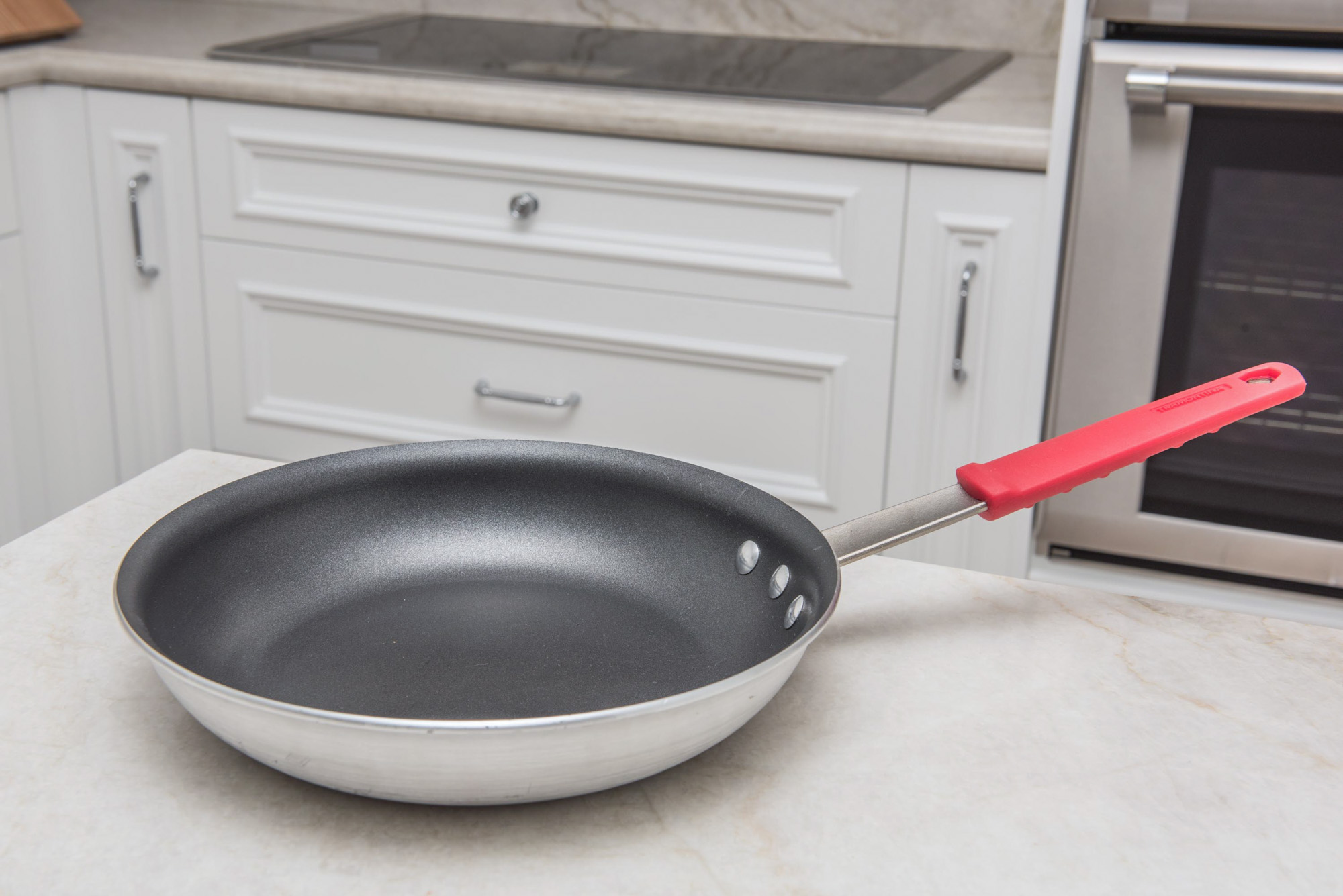 The 8-inch handle is covered in silicone, which is easy to grip, and protects your hand from the pan’s intense heat. The Anolon was ridiculously easy to clean; once it had cooled, we simply wiped it with a paper towel in between tests and washed it with a damp sponge when we were done.