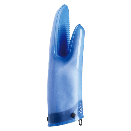 Eschewing the design of its previous silicone mitt (now discontinued), this version is bulky with a finger pocket that is both too narrow and too long. The inner shell is made of cotton, and the exterior section for the hand is covered in silicone, while the wrist is only shielded by potholder-thin material. The mitt’s bulk prevented any maneuverability, so it was impossible to pick up a kitchen utensil. At 40 seconds, the OXO Good Grips mitt also paled in comparison in heat resistance to its previous model. The silicone also got extremely hot, and we singed our fingers on it when removing the mitt from our hand.