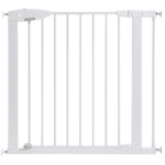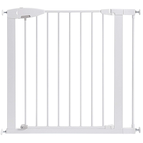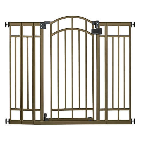 Aside from not being suitable for use with children, the Carlson Design Studio’s metal construction feels rigid and does not flex when pulled. With all-steel construction, this gate is very durable against scratches and even teeth markings. This gate fits doorways 37.5 inches wide to fit most standard doorways, but a 4-inch extension is included.