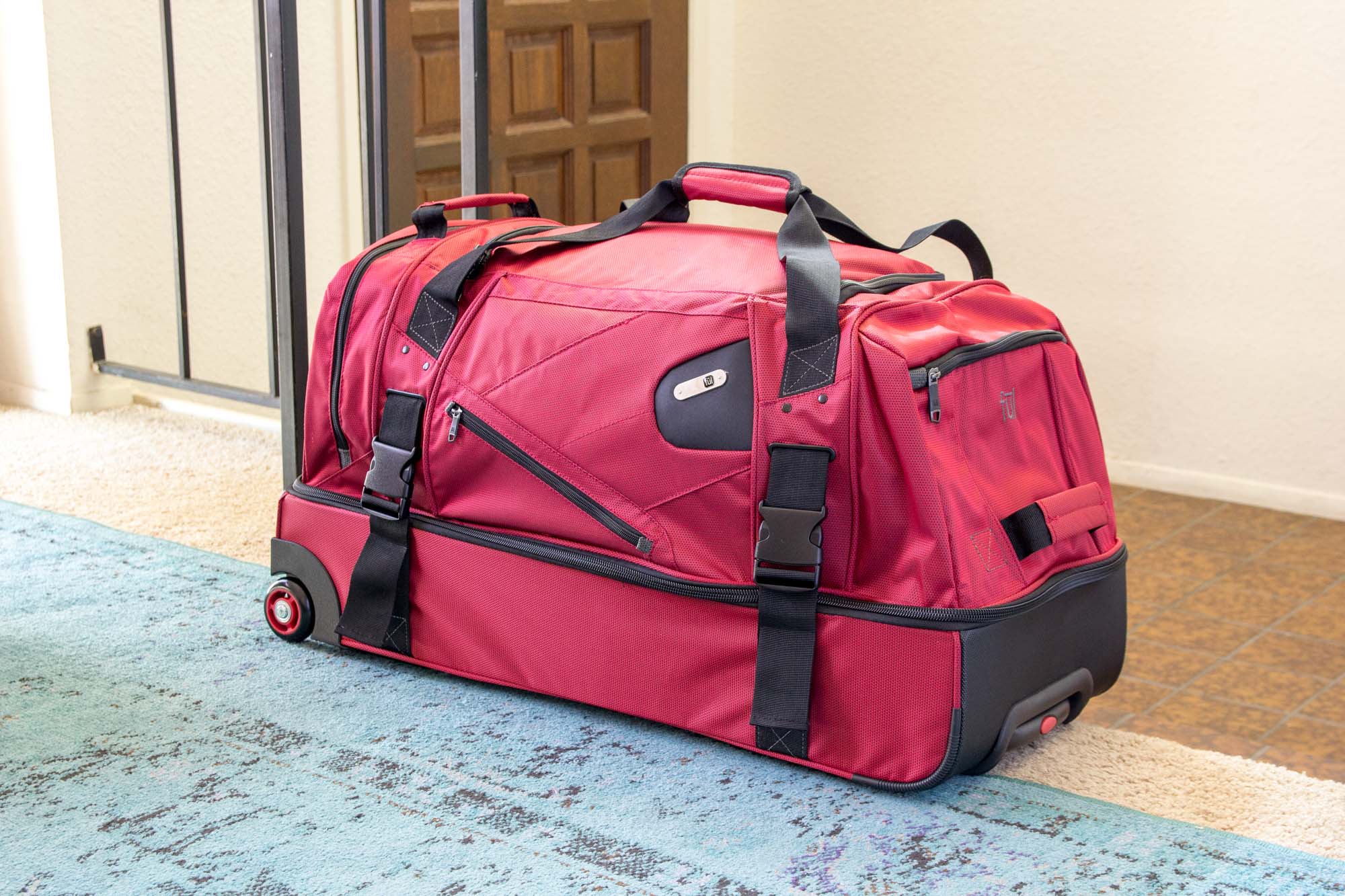 Tip: Choose a two-wheeled duffel with the wheels placed a good distance apart. If they’re too close together, the bag will tip more easily from side to side.