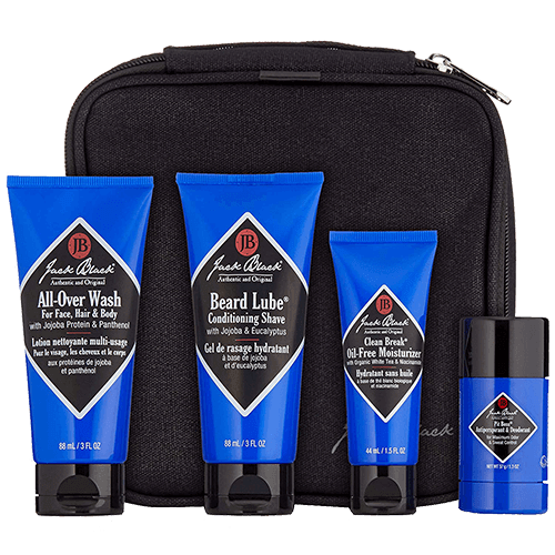 Jack Black includes a complete set of travel-ready toiletries: hair-and-body wash, shaving cream, a post-shave moisturizer and antiperspirant. The set we bought also had some sample pouches of exfoliating scrub and UV-blocking moisturizer. Jack Black’s signature scent is sporty but spicy enough to pass as a deliberate fragrance.