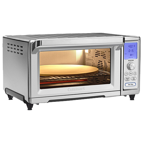 - The Cuisinart’s “speed convection” function heats up the oven to the desired temperature in seconds, eliminating preheating.