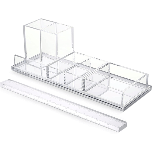 We like that the Exputran comes with an acrylic ruler that sits easily on a split pen holder, a large post-it organizer, and another smaller tray for accessories like extra staples, paper clips, and more. We thought this set looked great on a desk and helped organize all the small pens and nick-nacks we accumulated.