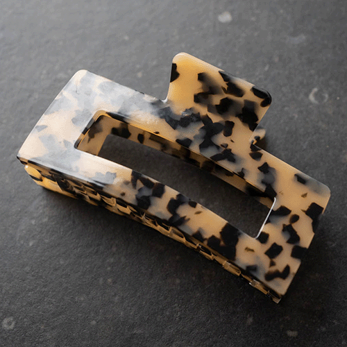 Growing up, we were used to plastic claw clips and understood they had a limited life span. Nowadays, more durable materials are available, like acrylic and celluloid acetate. The latter is a solid material that can bend without breaking and is known for its sustainability. Cellulose acetate can break down into cellulose and acetic acid. We were very surprised at how much pressure and twisting we could apply to these claw clips without cracking.