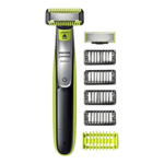 If you’ve got thick beard growth and like the look of close-cropped 3/16″ of growth, but not more, the OneBlade has a set of length attachments that will help you keep it there and clean up the edges.