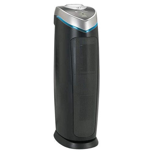 If you really don’t have space for a 24” x 15” tower fan, the GermGuardian – AC4825 is slimmer, though not much shorter. On high speed it’s the quietest machine with adequate performance for a small room.