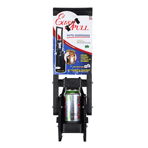 For most people, the Easy Pull Auto Dispensing can crusher is the best option on the market. It is easy to use, affordable, durable and prevents hazardous cuts from crushed cans by automatically dispensing the can into a bin below.