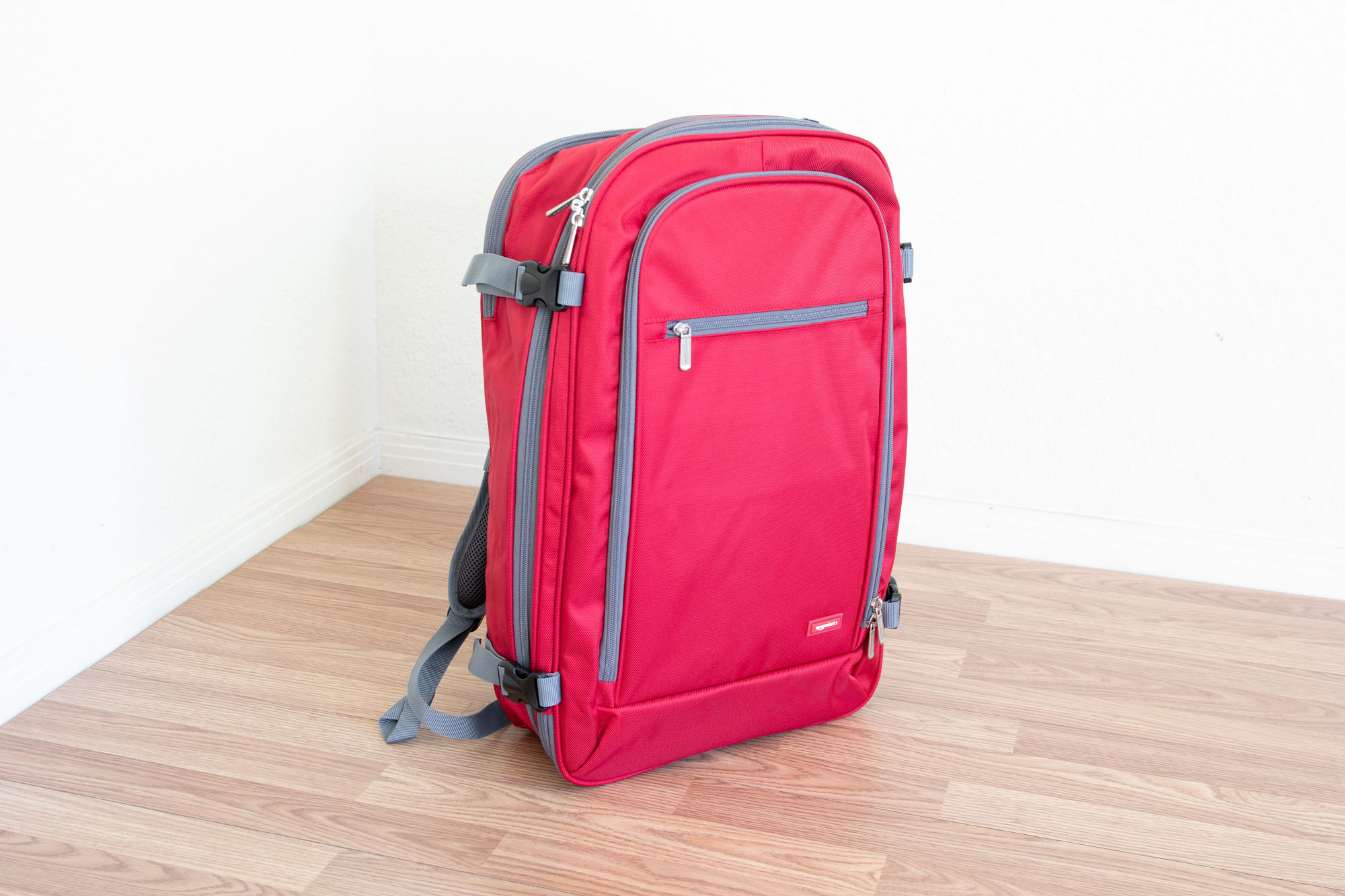 - With a plush back plate and shoulder straps, the AmazonBasics – Carry-On Travel Backpack is the most comfortable of all the backpacks we tested.