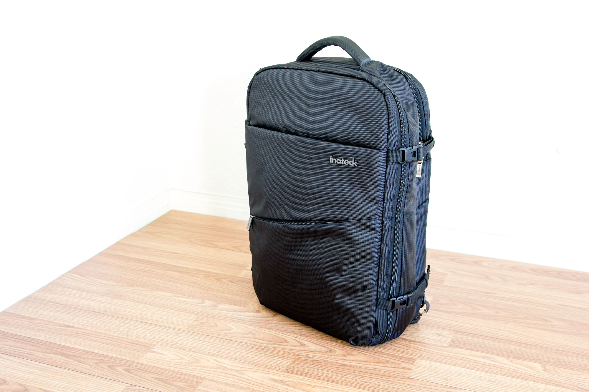 The only panel-loading backpack in the bunch, the Inateck lacks interior compression straps, but it does include a vinyl pouch for toiletries and two mesh interior pockets in its main compartment. On its exterior, there are two front slash pockets (one of which has interior pockets and sleeves) and sturdy compression straps.