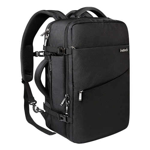 Our recommendation for light packers is the Inateck – Travel Backpack, a luxe, comfortably cushioned backpack with a well-padded laptop compartment and clever features like a hidden zippered compartment positioned against the back during wear.