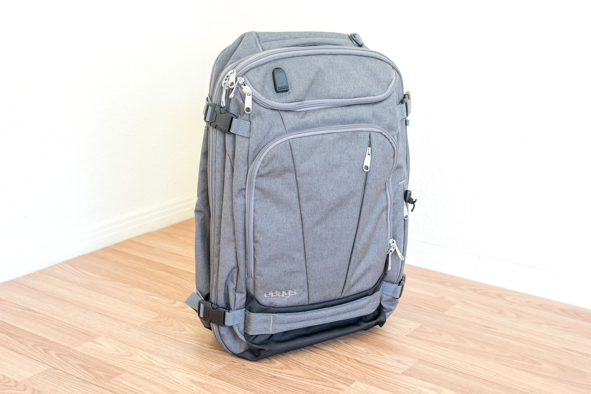 Like the AmazonBasics bag, the eBags pack has a streamlined exterior, though it may err too far on the side of minimalism: It only includes one exterior compression strap that’s detached from the bag. To us, this feature seems unwieldy and more trouble than it’s worth to put on and take off every time you want to access the pack’s compartments.