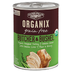 There are three more grain-free Organix Butcher & Bushel recipes: Chicken Wing and Thigh (which actually has chicken bone attached to the meat), Carved Turkey Dinner and Shredded Chicken Dinner. All of the Butcher & Bushel recipes have an abundance of meat in the first four ingredients. The regular Organix recipes and other grain-free recipe have more brown rice or starchy vegetables as primary ingredients.