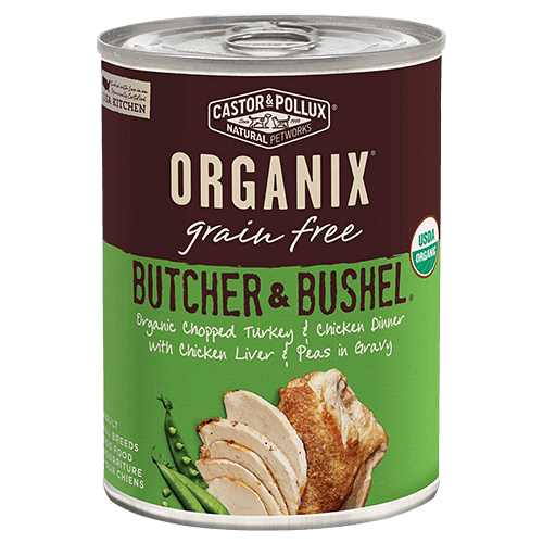 For the best canned dog food, we recommend Castor & Pollux – Organix Butcher & Bushel. The chopped turkey and chicken dinner is grain free and has three organic meats as its primary ingredients combined with vegetables and antioxidant fruits.