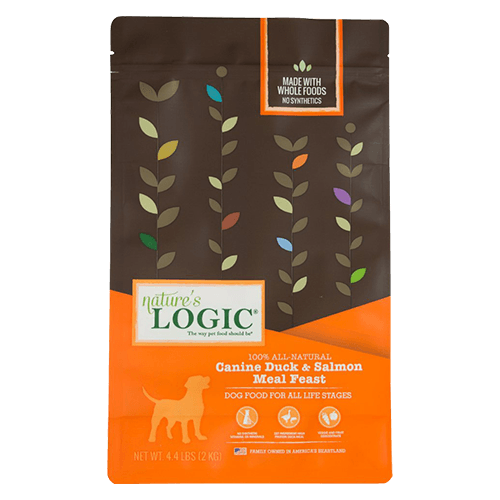 The Duck & Salmon Meal Feast has three meat meals — duck, turkey and salmon — rather than whole meat, which do not diminish in moisture and weight when processed. So you’re actually getting more meat in Nature’s Logic that you would in other dry dog foods that list meat as the first ingredient