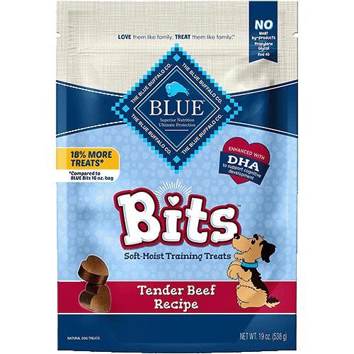 Blue Buffalo – BLUE Bits are flavorful mini-bites for training dogs and puppies.