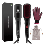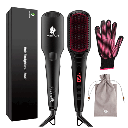 After hours of research, discussions with professional hair stylists and test driving products by straightening five heads of curly and wavy hair, we confidently recommend the MiroPure – 2-in-1 as the best hair straightening brush. The brush glides through all hair types easily, while the included textured, heat-resistant glove helps provide tension. Our budget pick, the USpicy – FS005, makes hair shiny and smooth at a more affordable price point, but its controls are harder to operate.