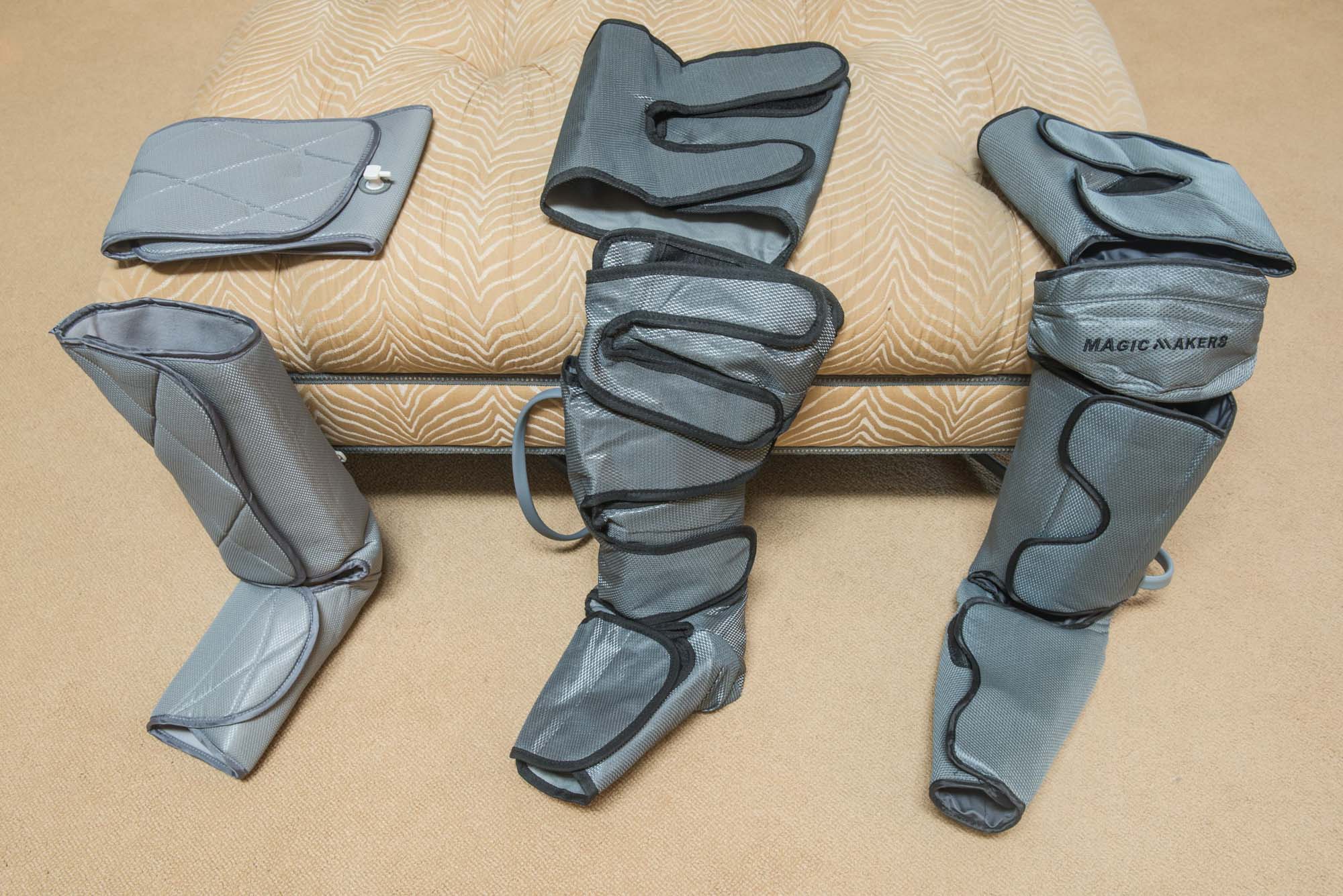 Another full-leg massager, Magic Makers, just didn’t make any magic. Like the Perfecore, it was frustrating and time-consuming to wrap all the pieces around each leg. The Magic Makers remote has a clear LED display for selecting three massage modes: pressing (for full leg), kneading (for calf and thigh) and shiatsu (for feet). Since an air compression device only inflates and deflates, the Magic Makers fails to simulate the application of manual pressure on specific spots of a true shiatsu massage. It also doesn’t knead, like our top pick, Renpho, does; it simply inflates and deflates at intervals.