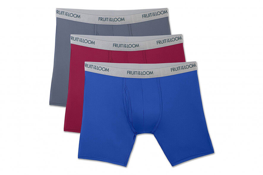Hanes is a familiar brand name for underwear, and we applaud the company’s attempt to manufacture 100% cotton boxer briefs for active men. Marketed as having “FreshIQ odor protection,” the ribbed cotton absorbs moisture, but it certainly isn’t moisture-wicking as Hanes claims. An exception to the five-pair pack is the gray-heather color, which is a cotton-polyester blend. It’s still not moisture-wicking, but it will be less likely to shrink after multiple washings.