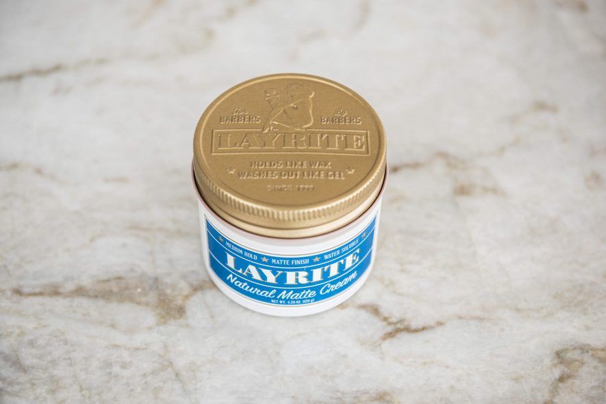 Layrite is famous for its line of pomades created by barber Donnie Hawley (who promotes his products with instructional, if unintentionally amusing, YouTube videos). Layrite – Natural Matte Cream is similar to the Challenger Matte Cream Pomade; it has a creamy consistency that’s easy to apply with fingertips.