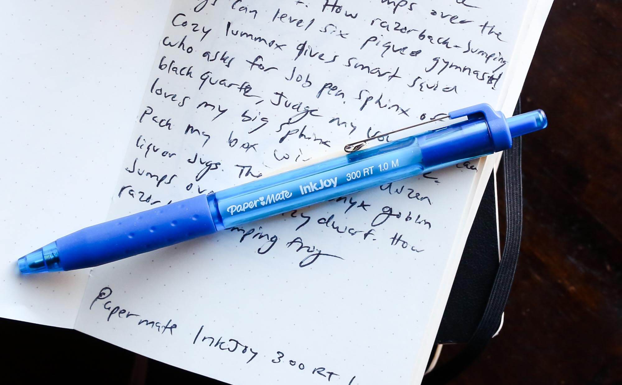 They found that the pen didn’t bleed or feather, and it didn’t smudge either. They thought the pen’s grip was solid and comfortable, which led to nice, uniform lines. The one minor discrepancy with the Paper Mate was that each new pen requires a bit of “warming up” the first time around before it stops skipping and starts writing smoothly. At most retailers, the InkJoy will cost you well under a dollar per pen.