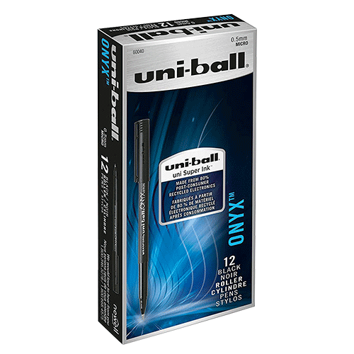 Those who aim to be more eco-friendly will like that the Onyx is made from 80 percent post-consumer recycled electronics — a fact uni-ball is proud of, as evidenced by the “eco” logo on each pen. uni-ball says that their Onyx ink also protects against “water, fading and fraud.” However, we didn’t test for this.