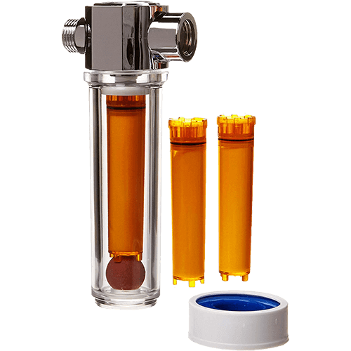 If you want to avoid sulfites or you hate the idea of a ball of an unseen metal plugging up with minerals, this system makes it easy to monitor when you need to replace the powder cartridge. It's not as effective, though, and dumping vitamin C in your water isn't cheap.