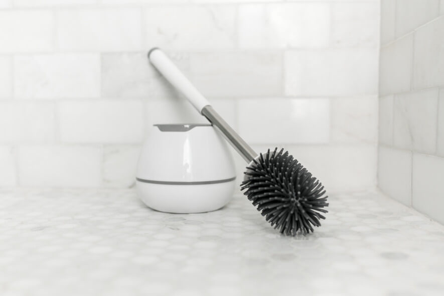 The OXO – Good Grips Hideaway Compact Toilet Brush is a slightly more affordable alternative to the SimpleHuman brush. The light-weight design doesn’t feel as luxurious, but it’s just as effective. The fact that the OXO is smaller also made it easier to hide out of sight. Its bristles are dense and long enough to reach under the rim, and its small head fits entirely into the bottom of the toilet drain.