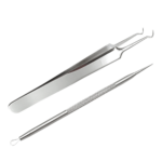 Blackhead tweezers: You will often find these tweezers labeled as comedone blackhead extractors or curved blackhead tweezers. Blackhead tweezers are similar to curved tweezers in that their tips are pointed and curved. However, blackhead-tweezer tips are curved more dramatically in a half-circle shape, so that the tweezer tip is almost 90° from its handle.