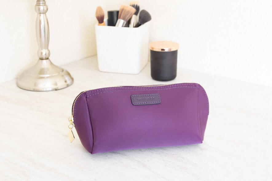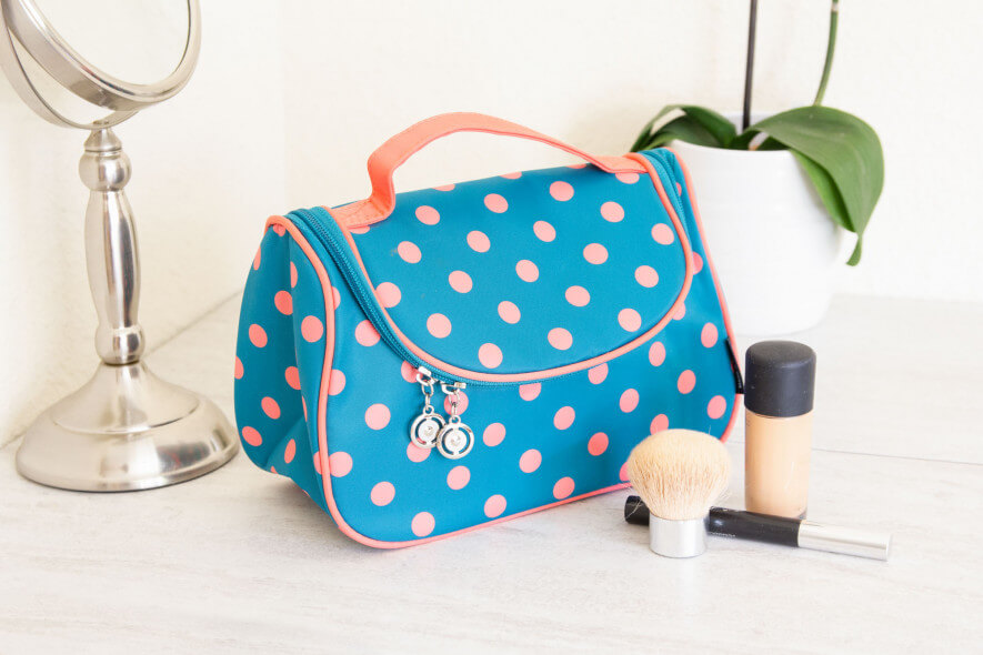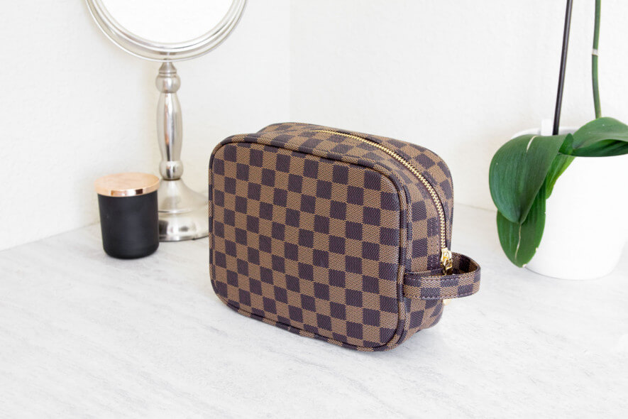 For those living the vegan lifestyle, the Daisy Rose is a good choice. This no-frills bag is made from vegan leather, with a small carrying loop and no pockets. Its brown and black checkered design is reminiscent of some famous designer bags, which we think accounts partly for this one’s popularity. It has a dark lining, which means that any unlidded mascara or eyeliner won’t cause noticeable smudges. However if you get light-colored makeup or toothpaste on it, you’re out of luck because this bag is not easily cleaned. The Daisy Rose is structurally sound and resistant to tears, but we found the zipper a little sticky.