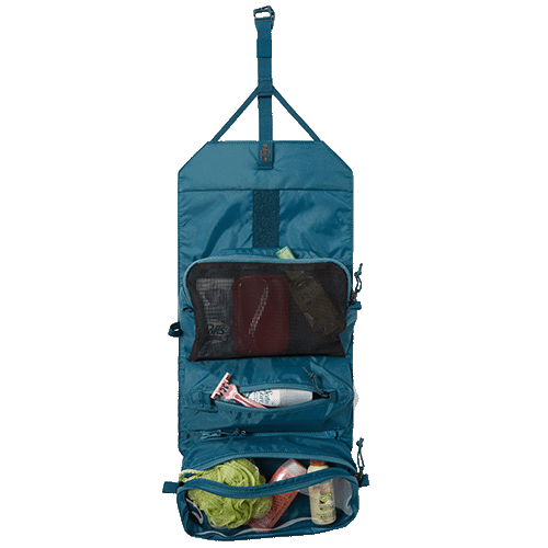 The REI Co-op – Shower Roll is our favorite hanging toiletry bag because it carries many items but packs up to a reasonable size (10.75” x 7.75” x 4”) to fit in your checked luggage or even in a carry-on. This toiletry bag comes in a bluesign® approved design with three separate compartments that roll up more compactly.